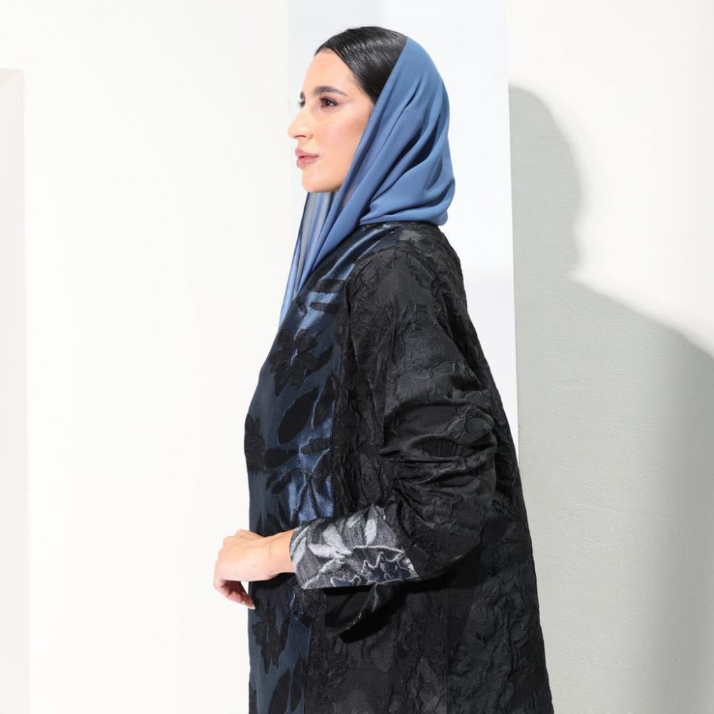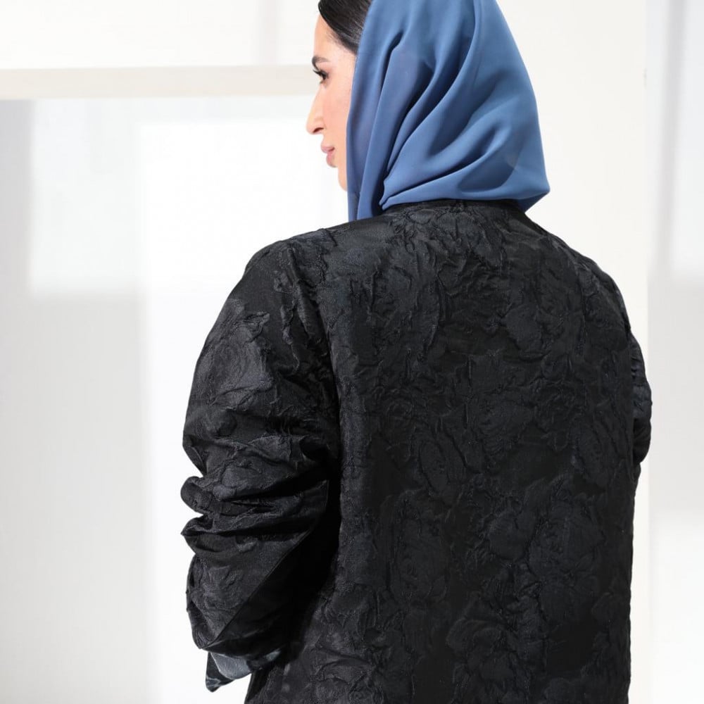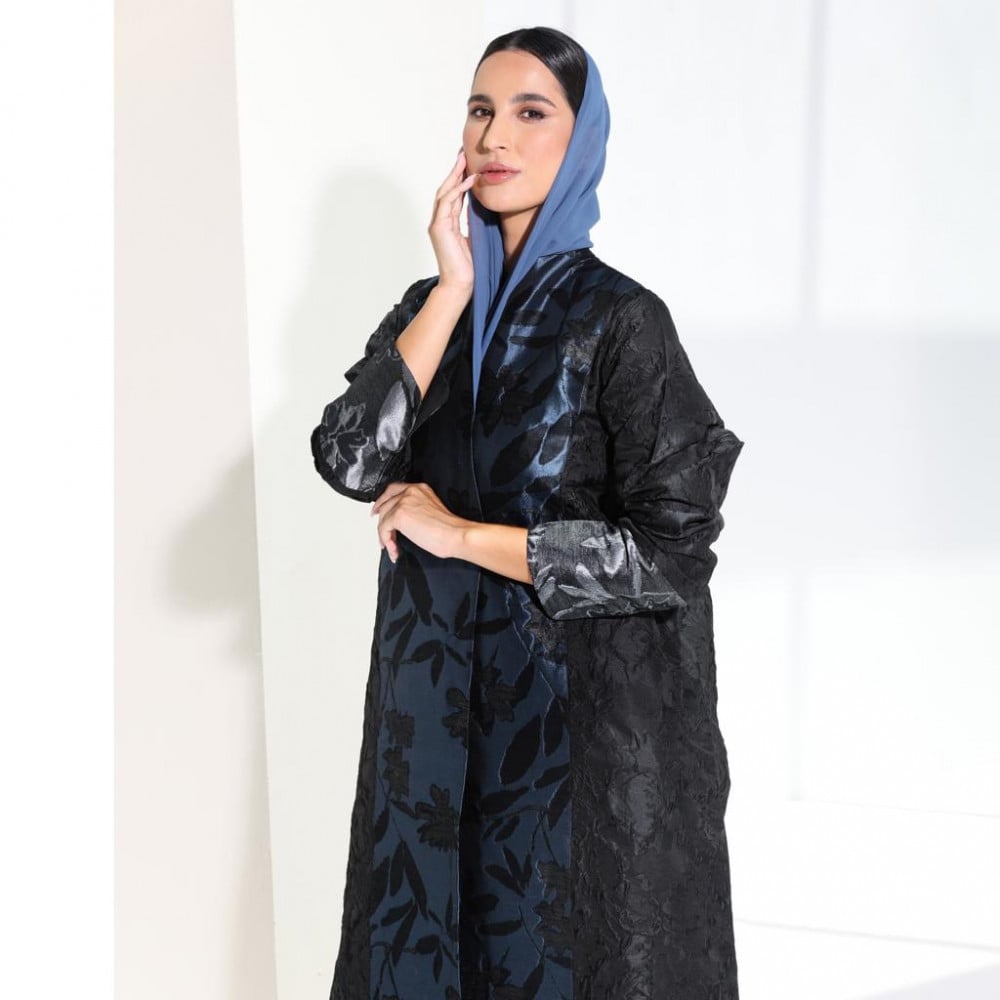 نوع القماش جاكار مشجر اسود و الامامي كحلي و الاكمام مائل للرصاصيالرجاء كتابة الطول و العرض في خانة الملاحظات